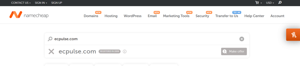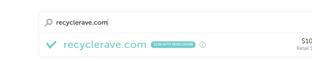 Simply copy and input each of the selected names one by one to check for their availability. As you can see from the images below ‘ecpulse.com’ wasn’t available as it was registered in 2008 but ‘recyclerave.com’ is available and ready for purchase.